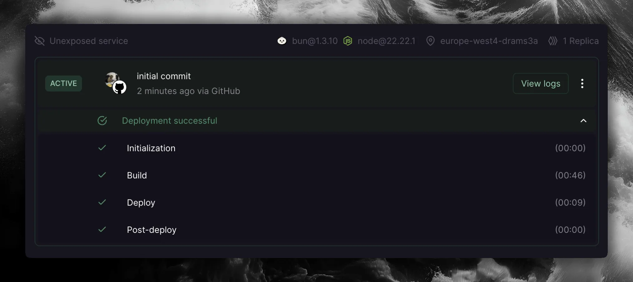 Railway will automatically deploy your application when you push to the connected branch. You can monitor the deployment in the Deployments tab.